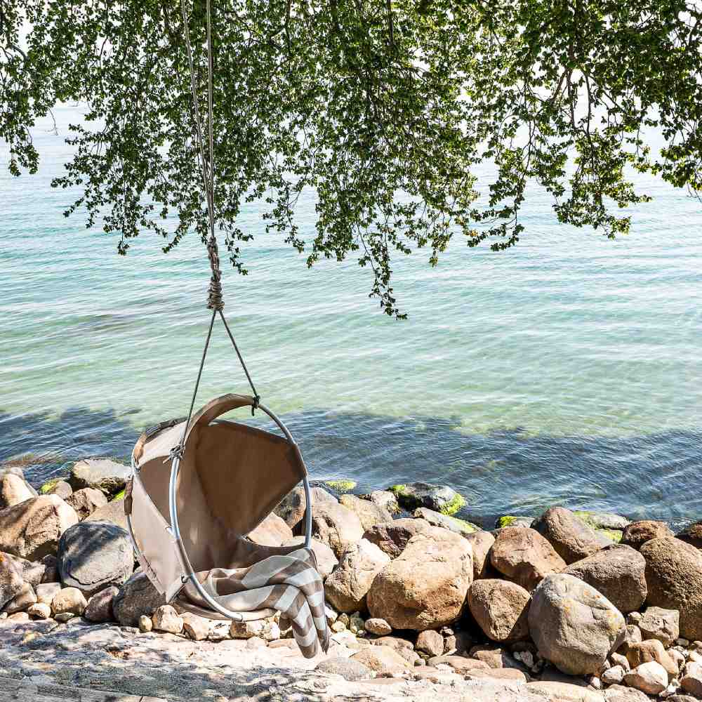 You feel embraced by the walls of the cocoon and yet you still have a free view of the sky, almost as if you were flying. It's perfect for chilling out on a summer day... or snuggle up under a chunky blanket and watch the stars come out.