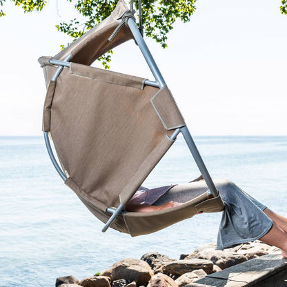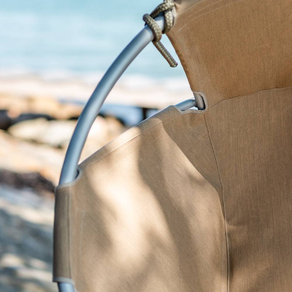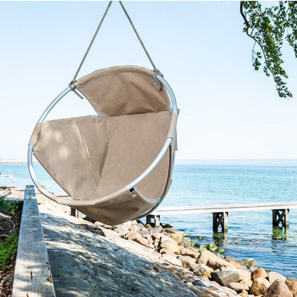 The stylish hammock chair consists of an aluminium frame creating a light and beautiful look with the comfortable seating made of 100% Sunbrella Plus® fabric attached to the frame with Velcro.