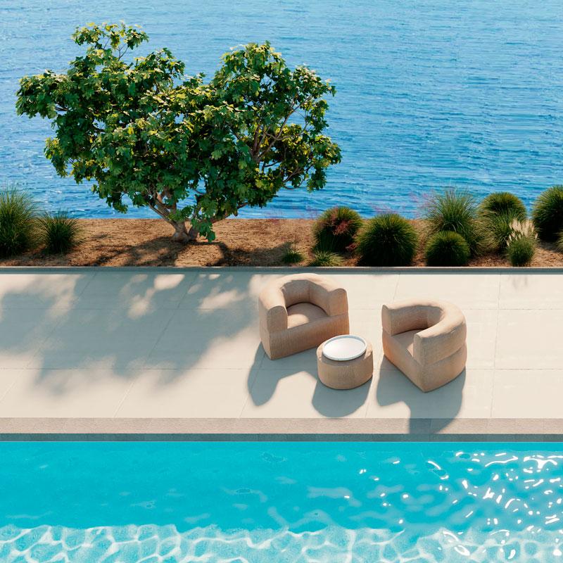 Sunbrella Plus has a surprisingly soft touch which makes this modern interpretation of the humble bean bag suitable for indoor use too.