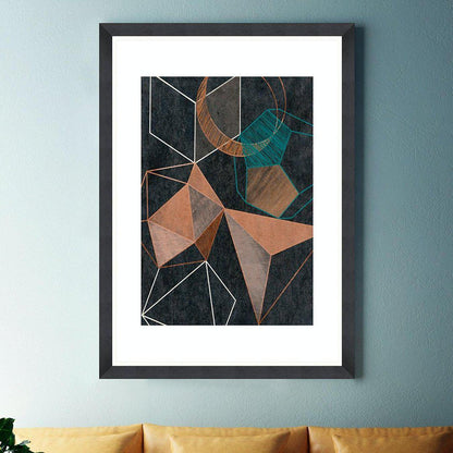 Copper Geometry sits within the Abstract collection and is made on lithographic paper with hand embellished copper foil and comes with a premium black wooden frame, protected with acrylic glass.