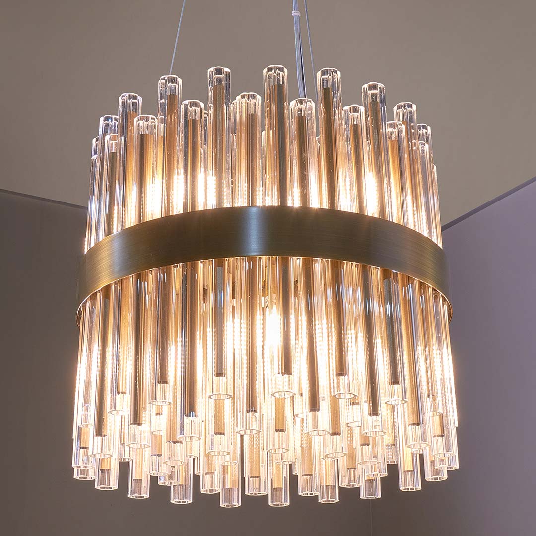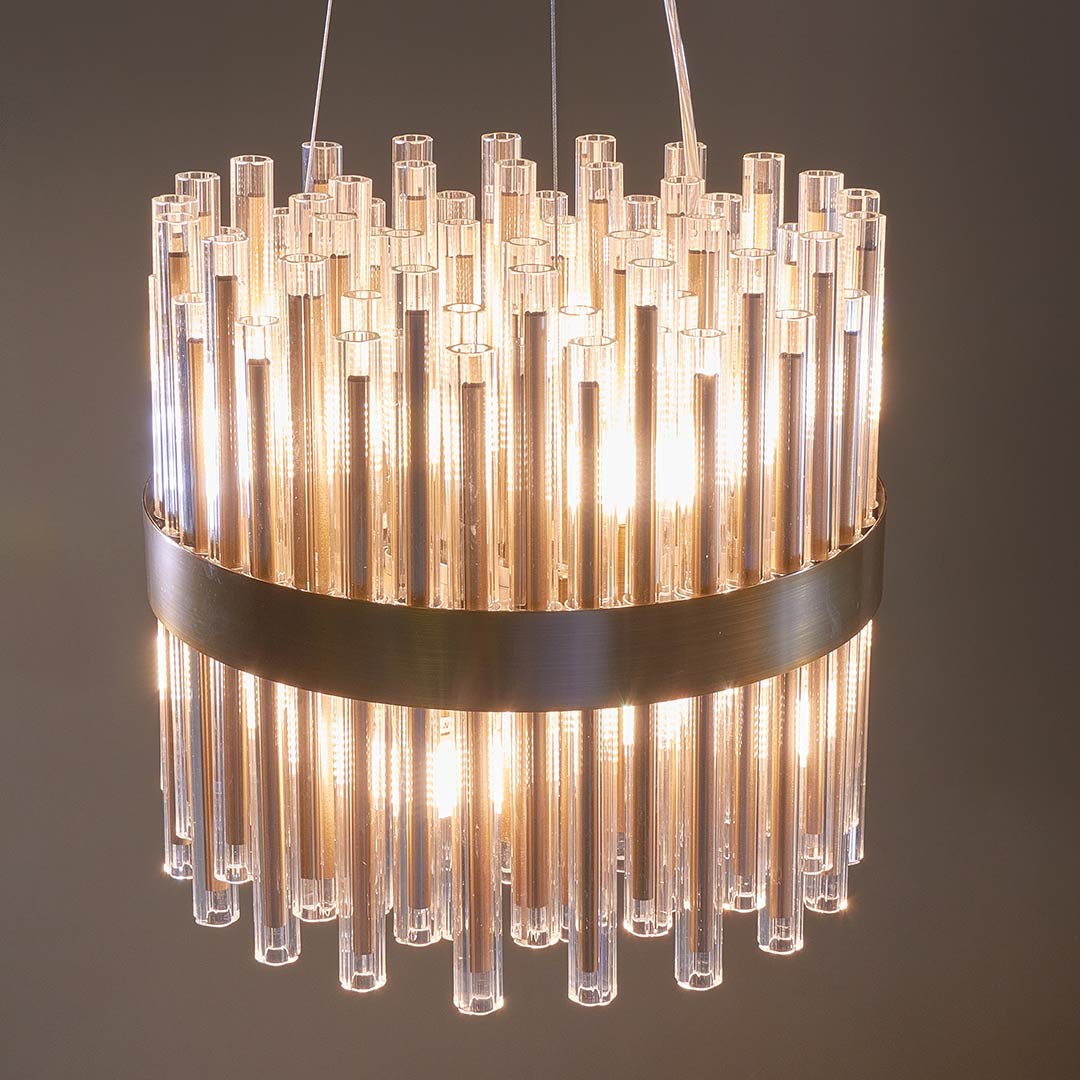 The RV Astley Colmar Chandelier is a gorgeous addition to any home. With its antique brass crown and clear glass beads, it casts a warm and inviting glow in any space. At 40cm in diameter, the glass chandelier is perfect for any room in your home. Whether you place it above your dining table to make a grand impression or in your bedroom for a touch of glamour, this chandelier is sure to impress.
