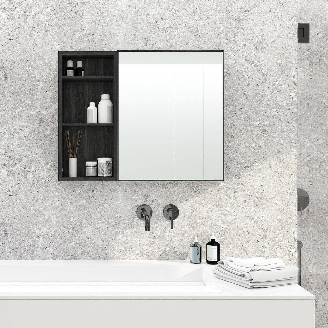 Sleek and stylish, the design of the cabinet takes a minimalist approach, further enhanced by its super slim oak profile with mirror edge. The interior of the 550 reveals two polished glass shelves whilst the soft close hinges of the door further accentuate the quality of the product. Combine with the box shelf to make a feature just like the main image.