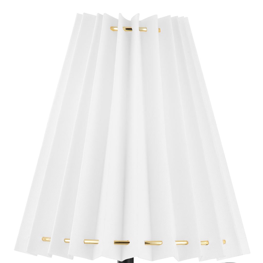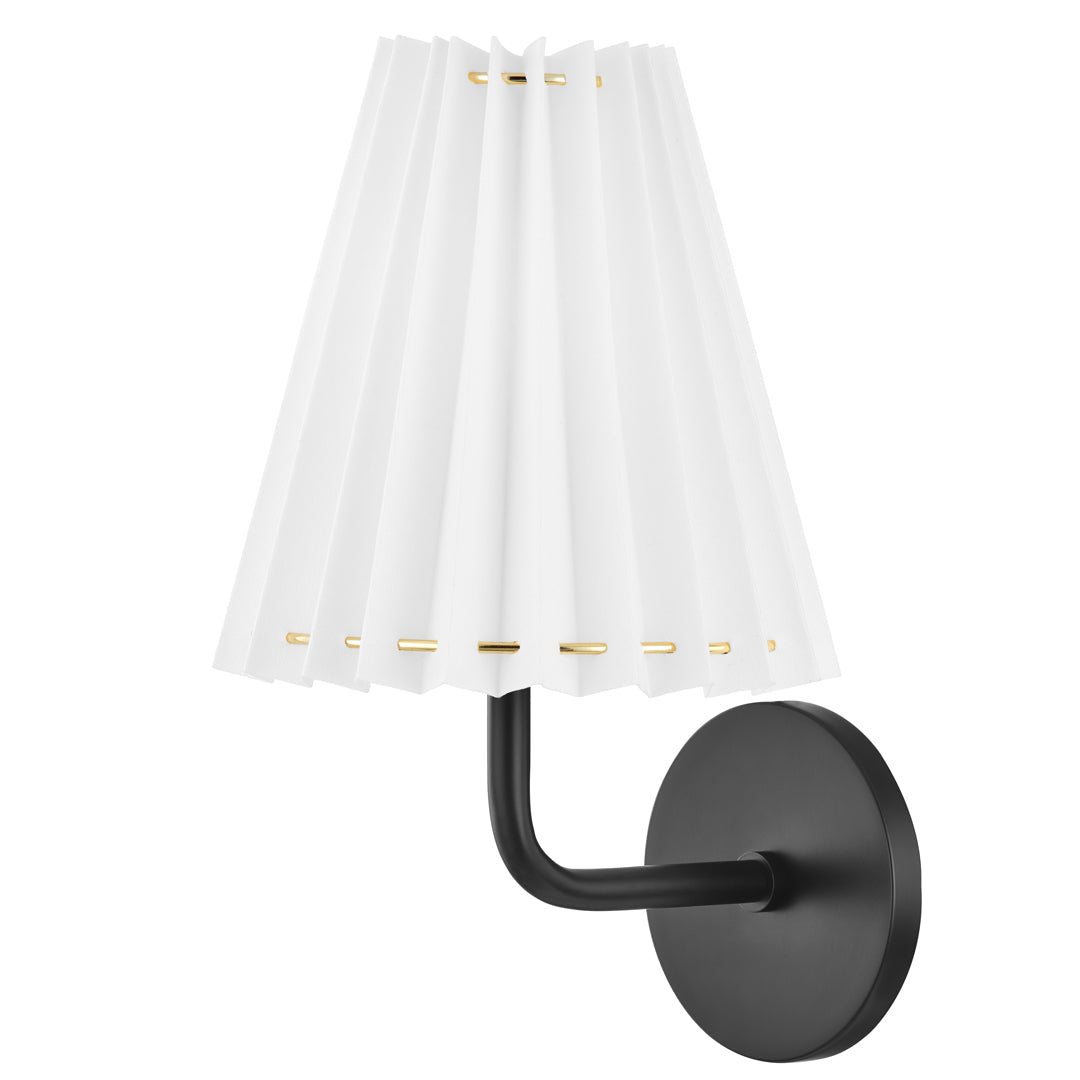 Crafted with meticulous attention to detail, the Demi Wall Sconce features a sleek and curvaceous black metal stem. Its smooth and graceful lines exude sophistication, adding a touch of refined luxury to your home. The contrasting white linen shade, delicately pleated and exquisitely crafted, adds a layer of elegance that is hard to resist.