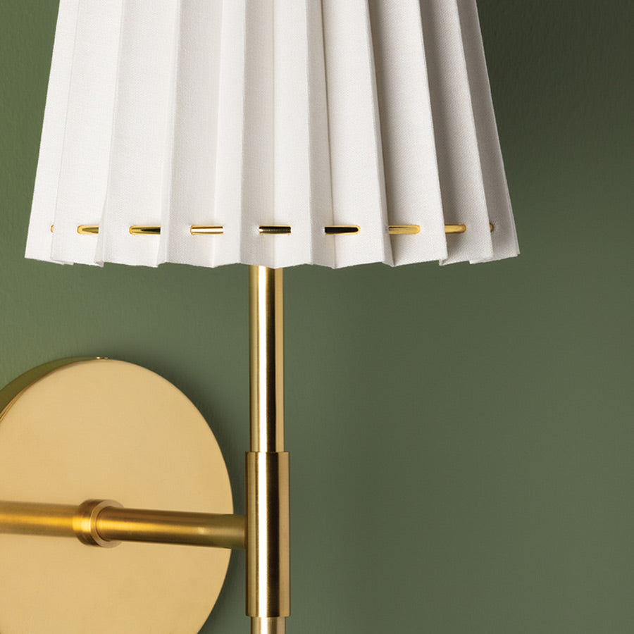 The Demi Linea Wall Light from Hudson Valley Lighting is the perfect fusion of contemporary and classic design. Inspired by traditional fixtures, this wall sconce features an aged brass metal stem and a luxurious white linen pleated shade which offers a timeless look that is suitable for any interior.