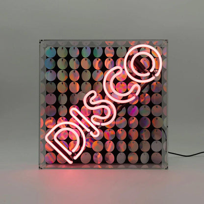 Behold the beauty of this amazing pink Disco Sequins Neon Sign! This fabulous, colourful statement artwork is everything fun and retro wrapped up into one. Handcrafted by skilled artisans out of pink glass neon tubing encased in a beautiful glossy acrylic box, this sign brings a unique, authentic glow to any room.