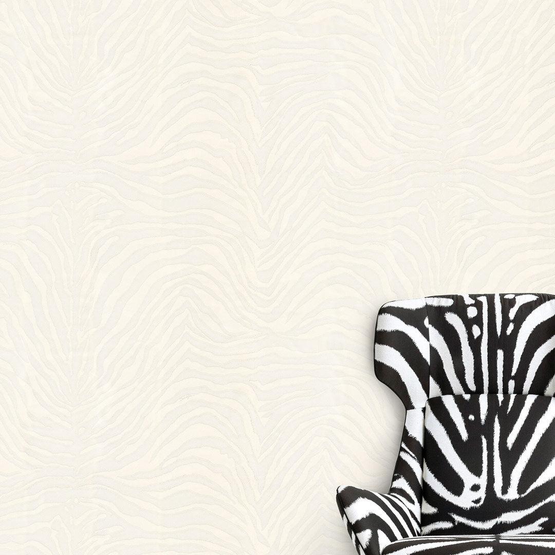 The Zebra pattern on this designer wallpaper makes a symbolic statement from Dolce & Gabbana, elegantly combining grit and boldness The non-woven wallpaper with PVC coating boasts intricately textured zebra stripes that will bring subtle texture to your space, all while being durable enough to last!