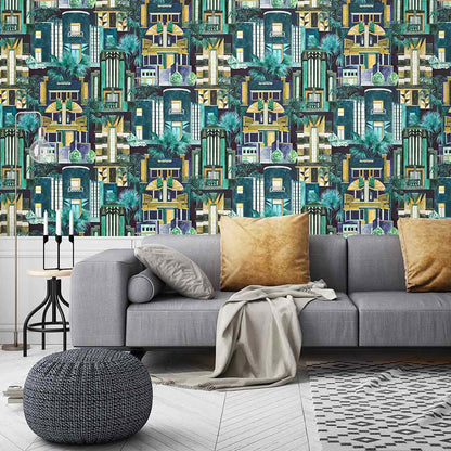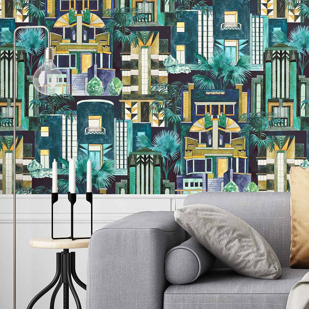 The Downtown Deco Wallpaper by Brand McKenzie is a bright and bold wall covering, letting splendid 1920s architecture come to life in a celebration of colour. Let the detailed brushwork of the Indigo finish compliment a bathroom or kitchen wall, or create a feature wall in your bedroom or living area with this new exciting range.