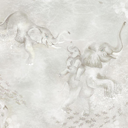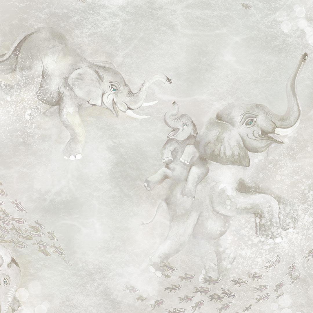 Elephant Breaststroke Wallpaper by Brand McKenzie invites you to dive into an enchanting aquatic world, where the pure joy of this wallcovering is reflected by the massive smiles on these elegant elephant faces. Glide weightlessly through the water and swim alongside these majestic creatures and the detailed schools of fish in this magic and unforgettable wallpaper.