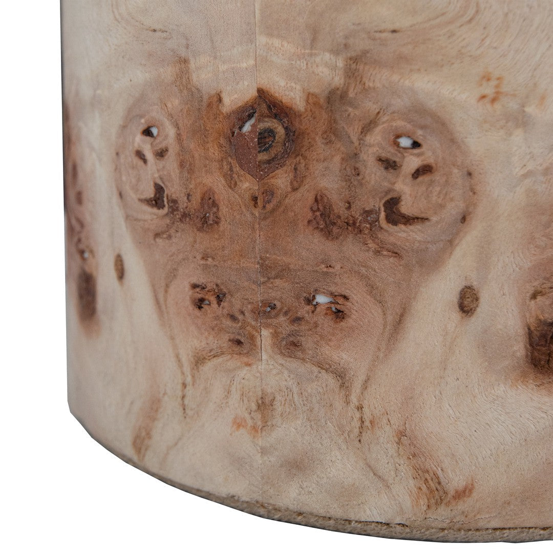 The exterior of the Ellery Wine Cooler exudes natural warmth and charm, with the wood’s unique characteristics making each piece truly one-of-a-kind. The rich, organic feel of the wood is perfectly complemented by the sleek, antique brass interior, which provides a modern contrast to the rustic exterior. This combination of materials creates a harmonious balance, blending classic elegance with contemporary style.