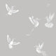 Depicting intricate, hand painted exotic birds in flight, their graceful movement captured using a subtle shade of white set against a soft grey background.