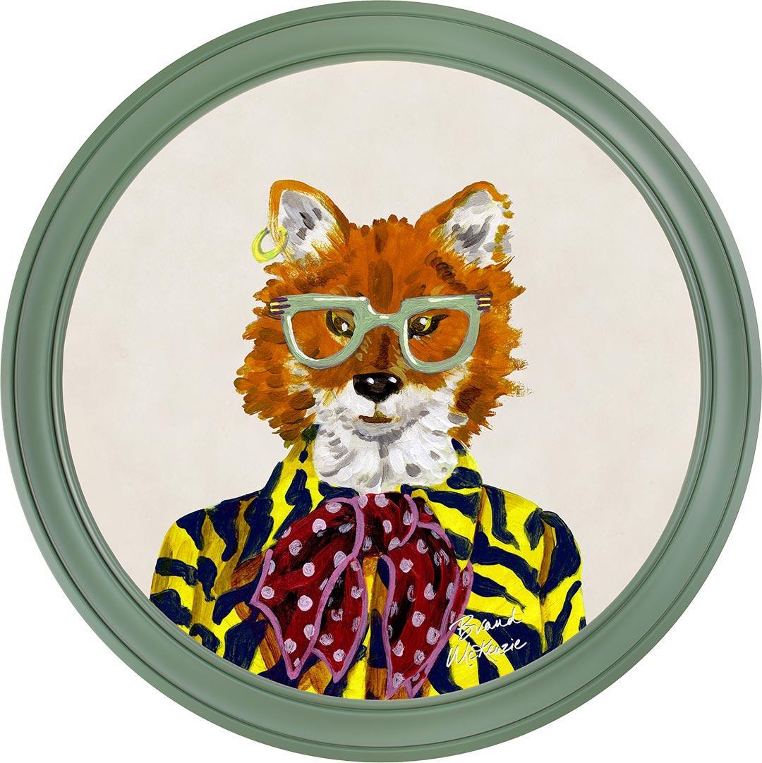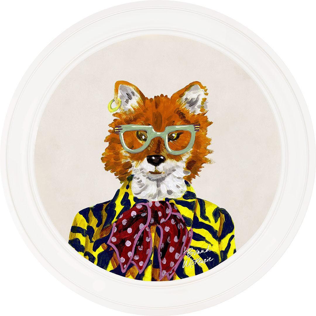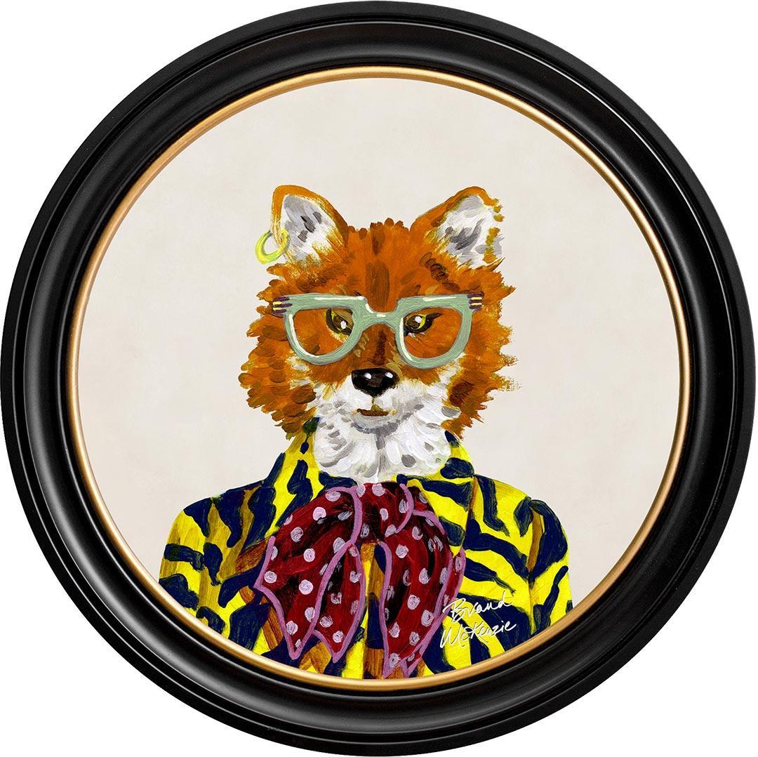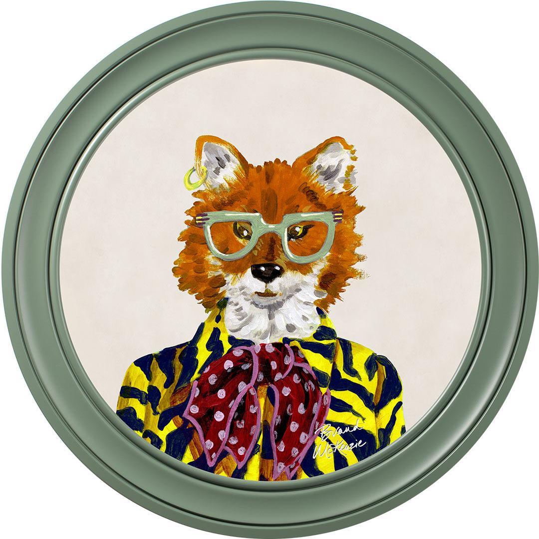 Add a touch of quirky sophistication to your home with the "Fine China - Todd" framed art print from Brand McKenzie. This artwork features Todd, a fox who redefines intellectual style with his mint green spectacles, bold zebra-striped blazer, and flamboyant polka-dot cravat. His character exudes a charmingly witty intellect, with a subtle hint of rebellion in his gold hoop earring. If you appreciate stylish intellect and unique charm, Todd is the perfect addition to your space.