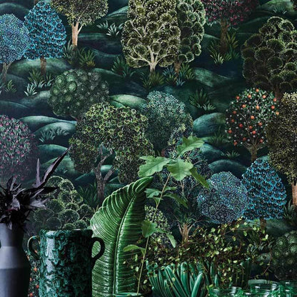 This magical and tranquil wallpaper design comes in Forest Greens colourway which is a rich, patterned, forest design. This striking wallpaper will look great in a hallway, dining room or bedroom feature wall.