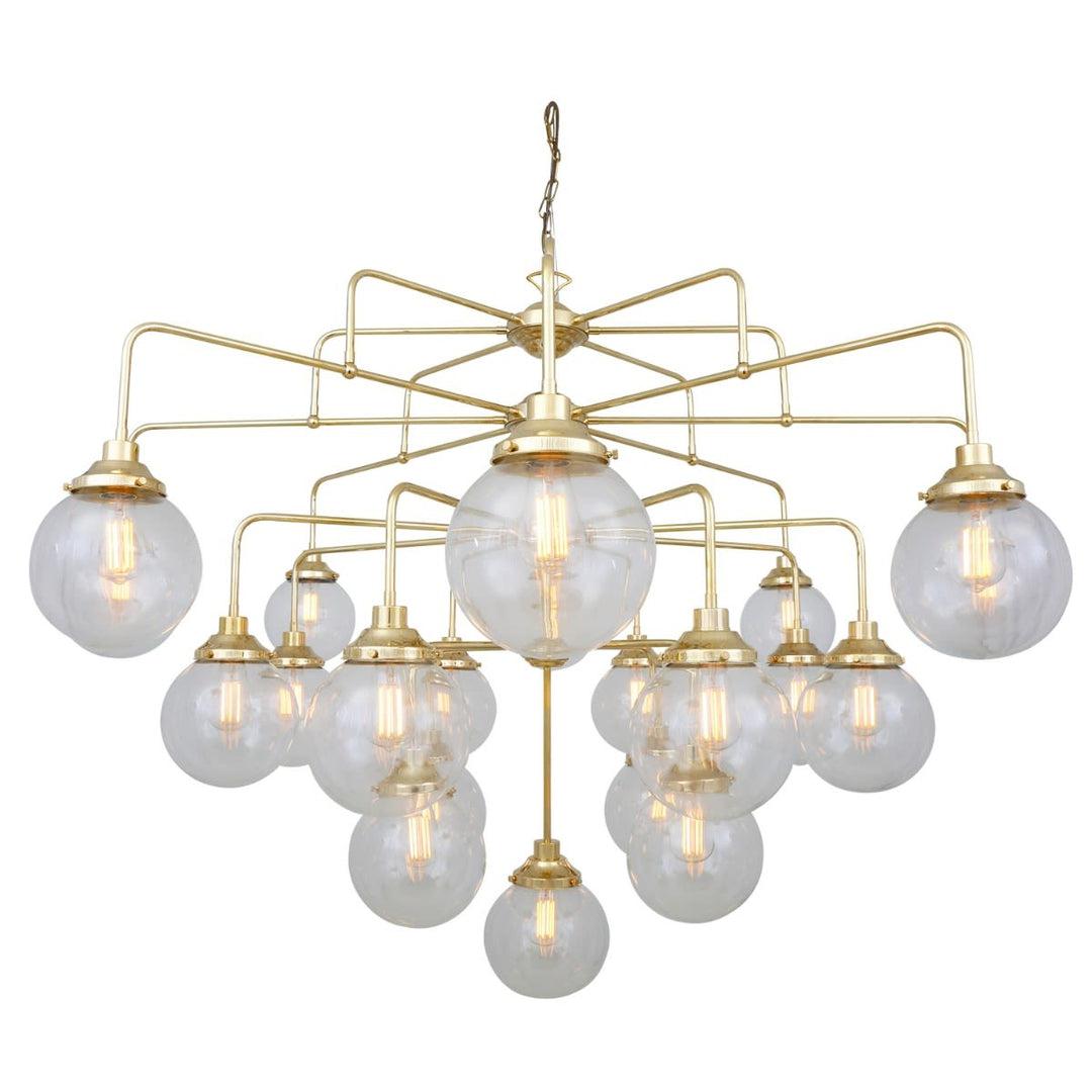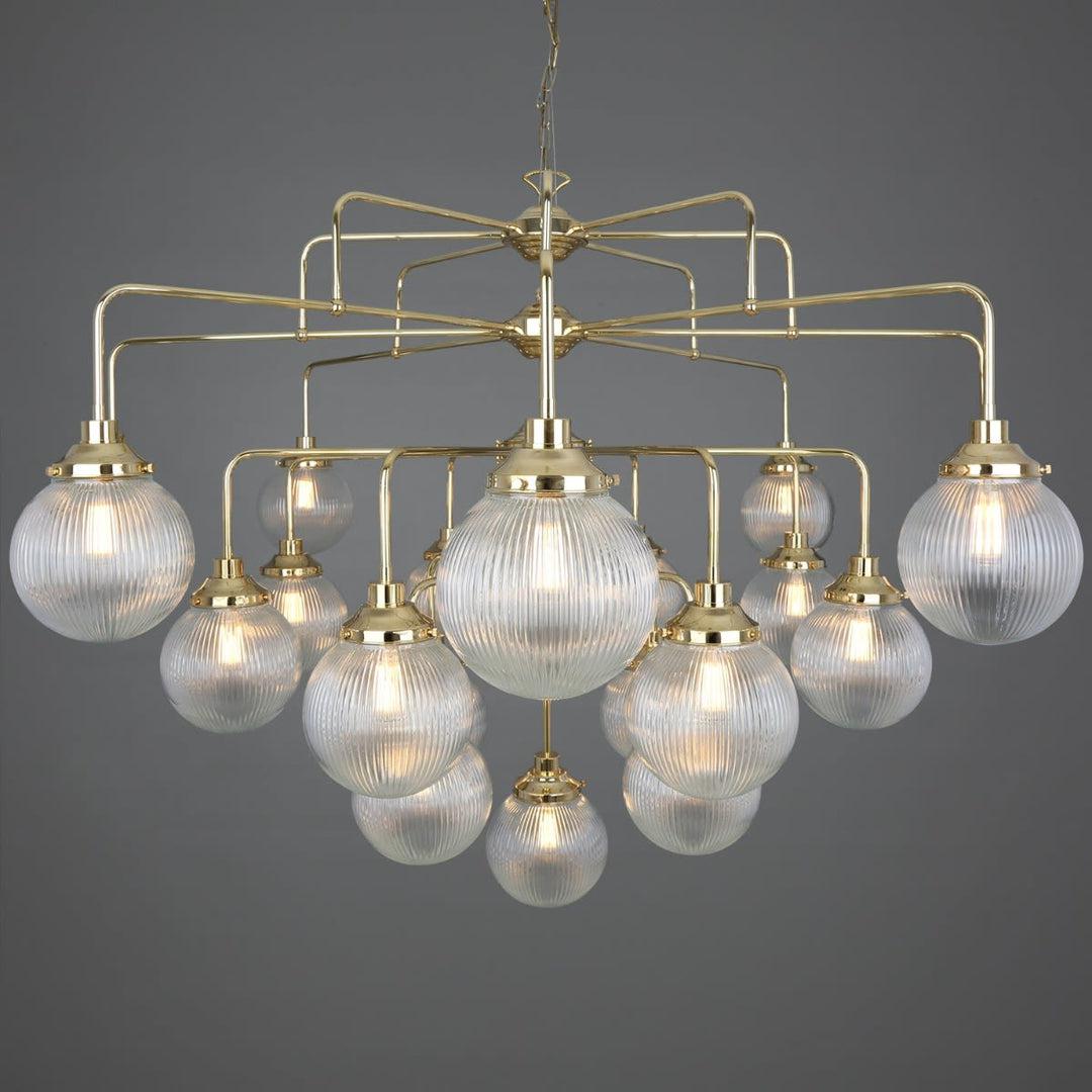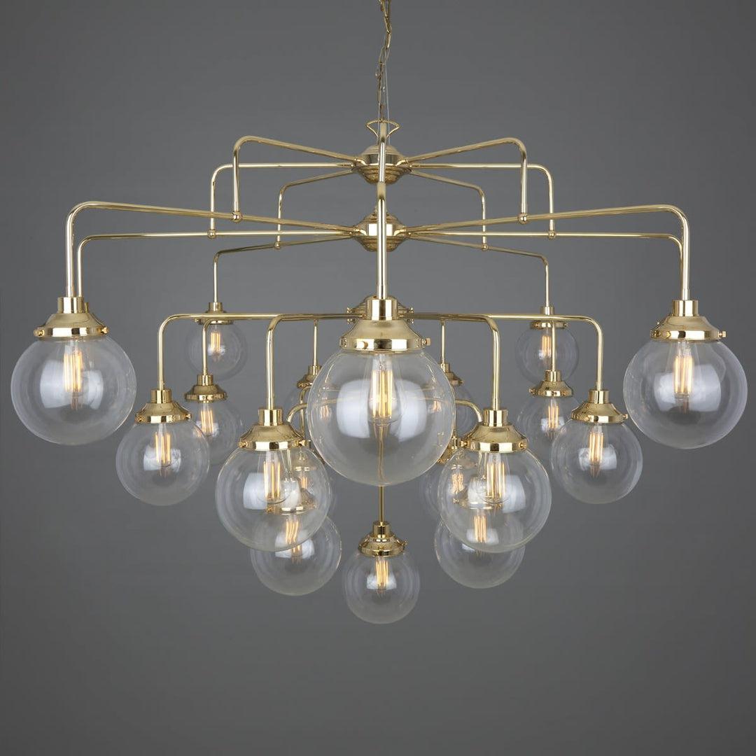 The four tier mid-century Rome Chandelier by Mullan Lighting features 21 contemporary glass globes to create an impressive and grand light fitting that demands attention.