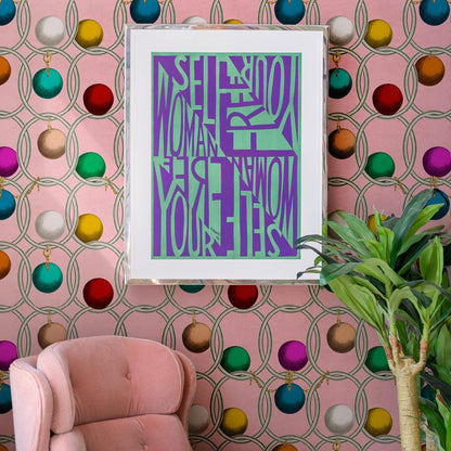 Using bold colours and dynamic shapes, Faith Ringgold has created a visual symphony that celebrates the limitless potential of women. And now, you can experience this vibrant energy in the comfort of your own home with this premium wall art. Printed on high-quality fine art paper, this graphic artwork is elegantly framed in a mirror silver frame with a white slip, adding a touch of contemporary elegance to any room.