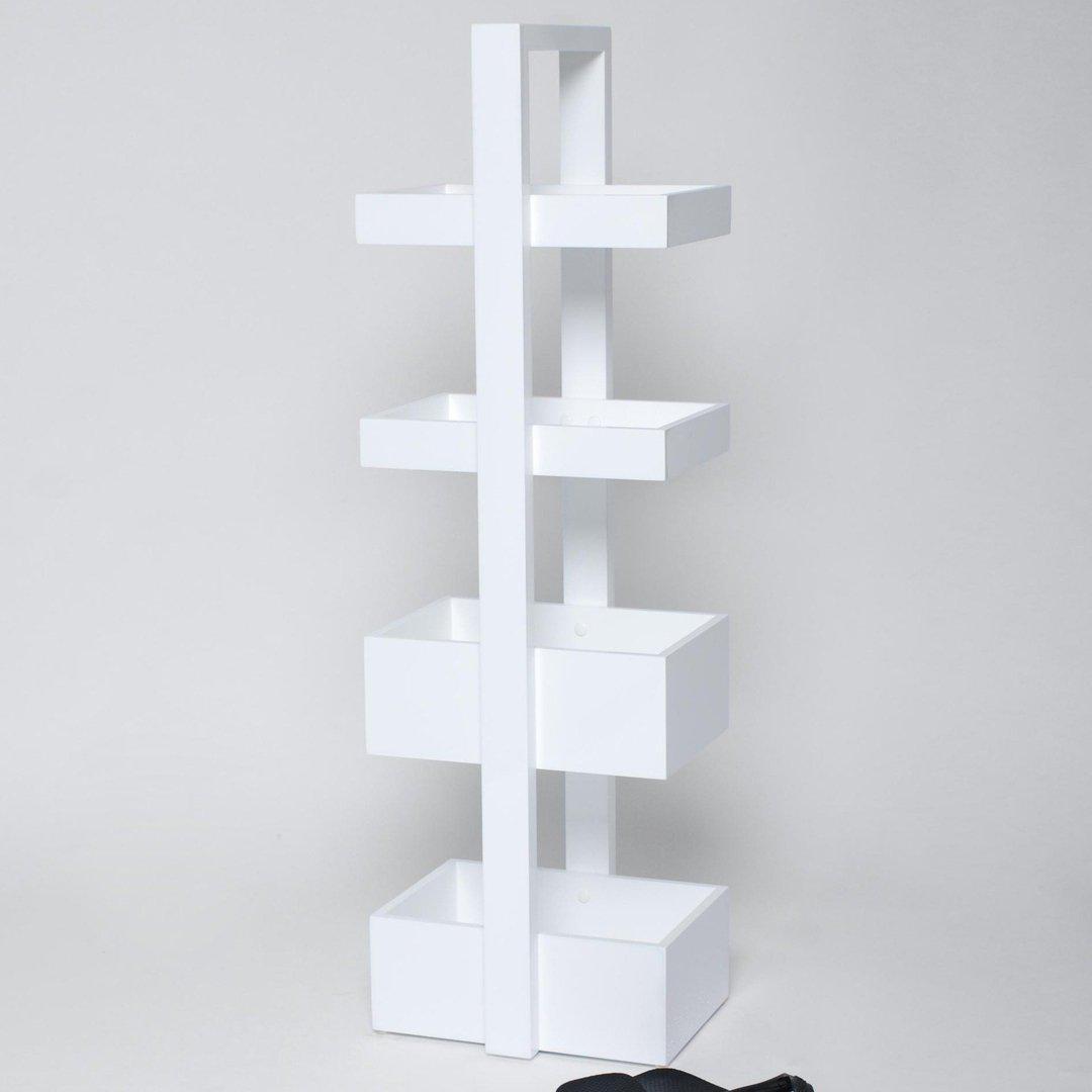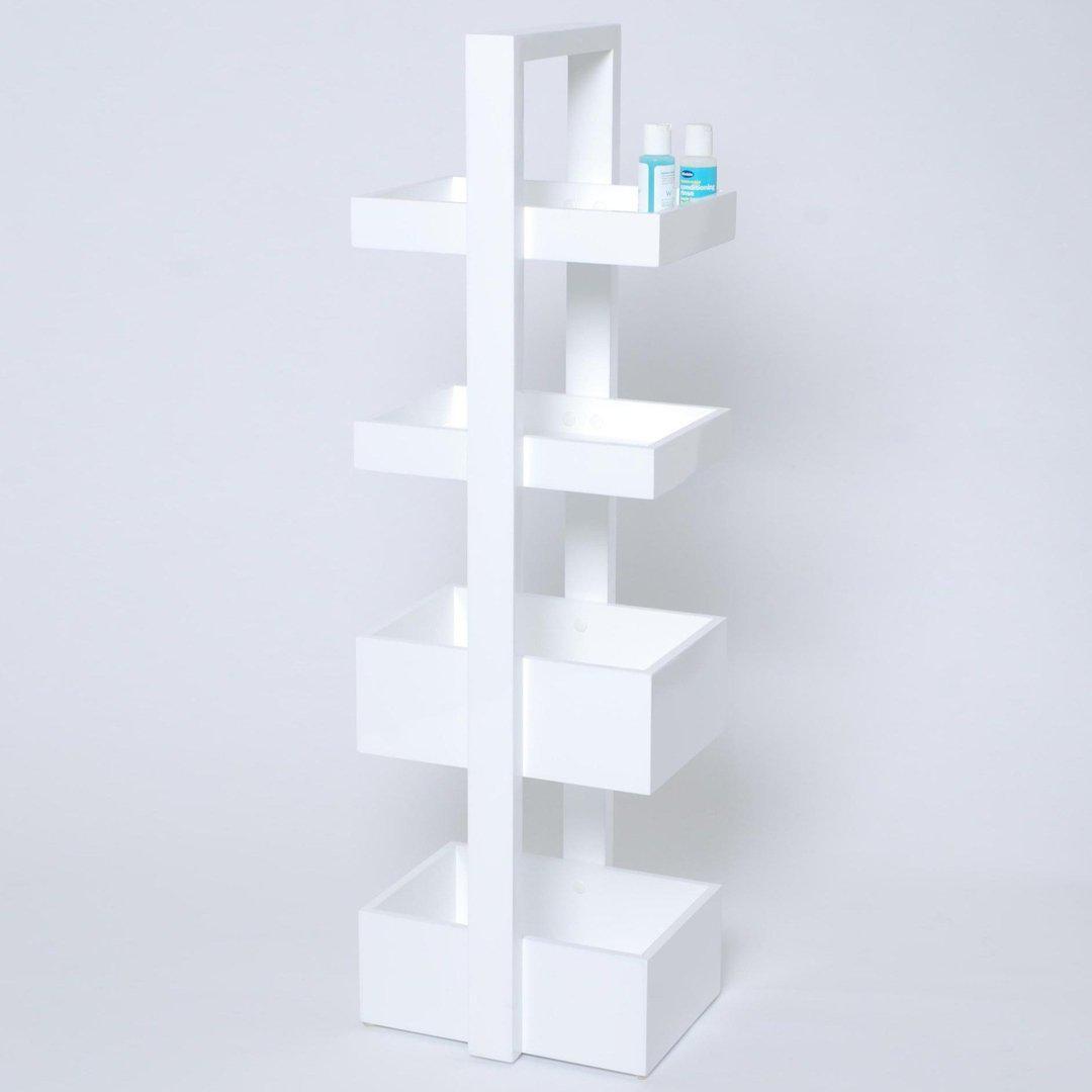 Add a contemporary touch to your bathroom with Fuji bathroom caddy 4 tray in super shiny, sleek gloss white. This funky caddy will look great in your bathroom whilst the four trays provide plenty of space to organise your toiletries.