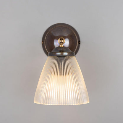 The Gadar Art Deco Holophane Wall Light by Mullan Lighting is suitable for modern and industrial interiors, the holophane glass shade creates a warm glow when lit with an Edison style bulb. Very versatile, this holophane art deco style wall light comes with swivel bracket so you can direct the light at a number of different angles.