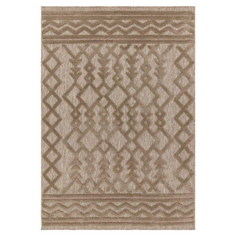 The Geometric Links Outdoor Rug in brown brings a touch of sophistication and warmth to any patio. The intricate 3D geometric patio rug, crafted with premium polypropylene yarns, is suitable for both indoor and outdoor use.