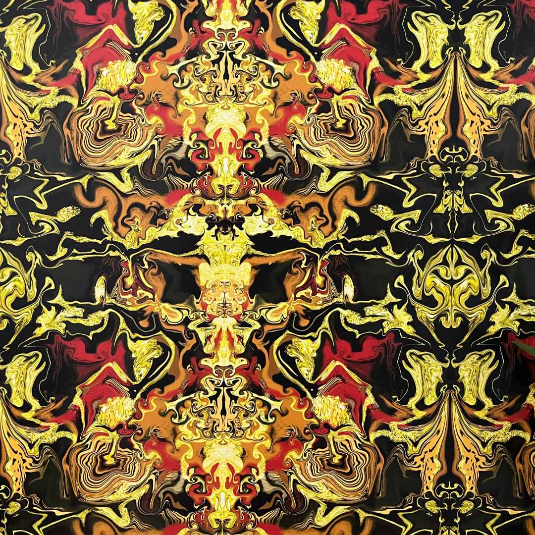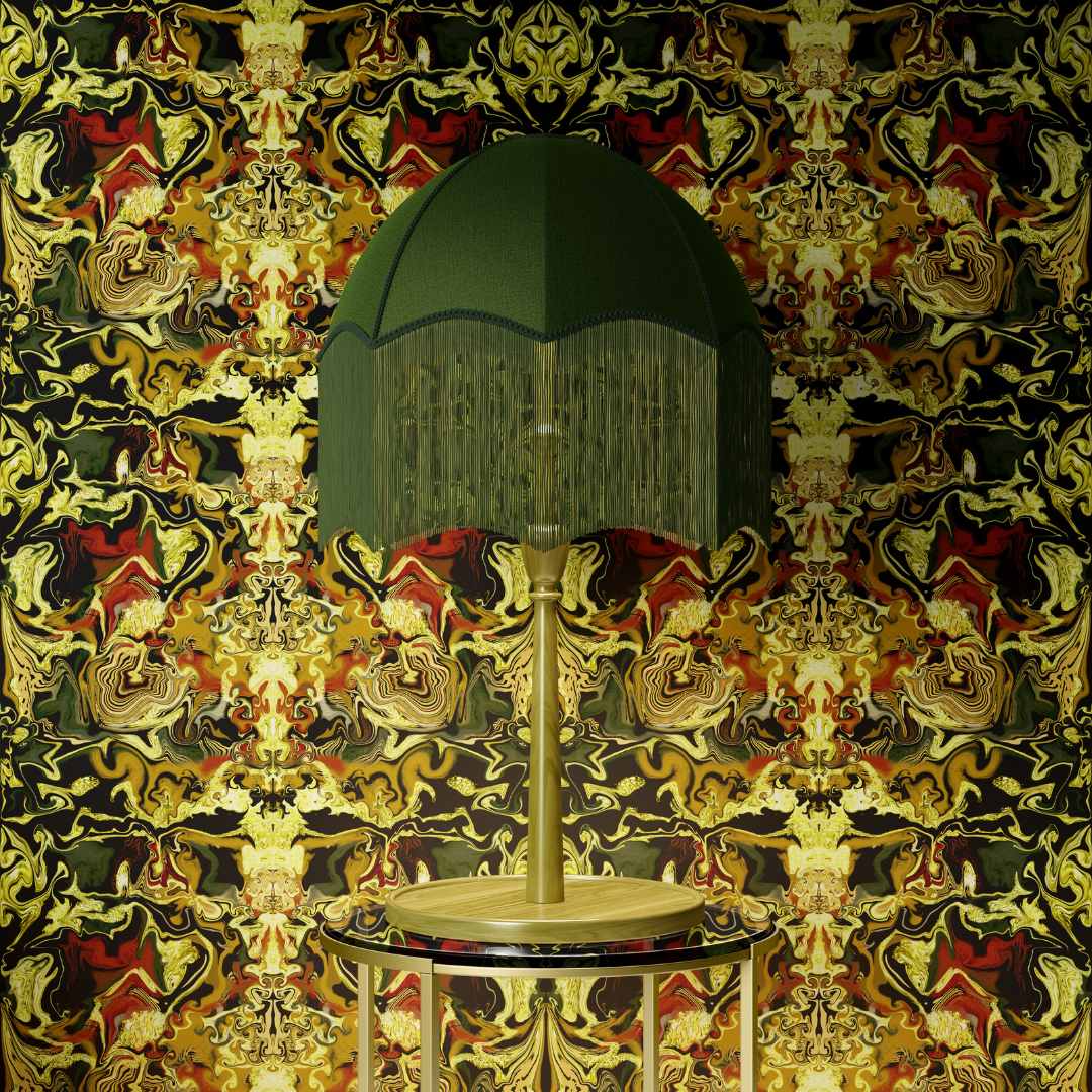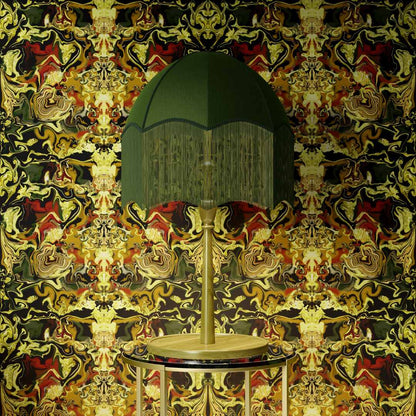 Introducing our mesmerizing Gilded Wine Wallpaper by Liberty James Studio, a true masterpiece of maximalist design. This eye-catching creation dazzles with its vibrant array of formations, resplendent in shades of gold that dance across the canvas in a symphony of opulence. Abstract shapes intertwine, weaving a tapestry of richness that seamlessly blends deep reds and lush greens, igniting the senses with a dynamic visual feast.