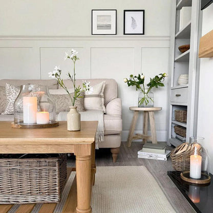This glass hurricane lantern is a perfect companion for both those cherished moments of solitude and for gathering with loved ones. Set it on your coffee table during intimate gatherings, instantly transforming your living room into a haven of intimacy and connection.