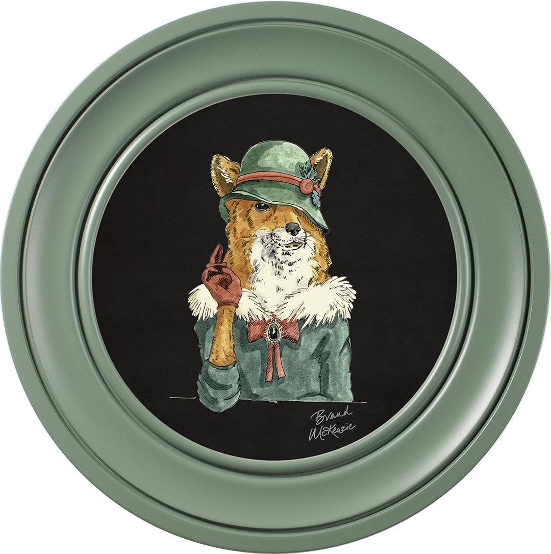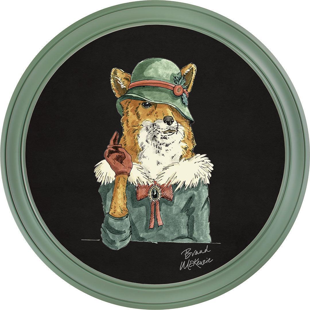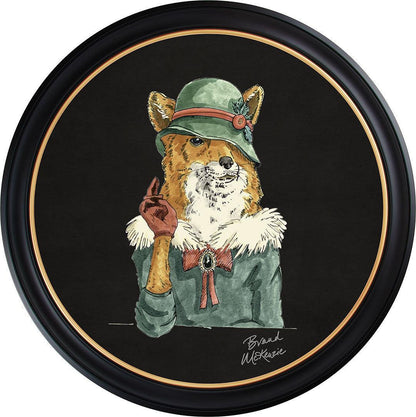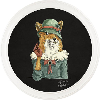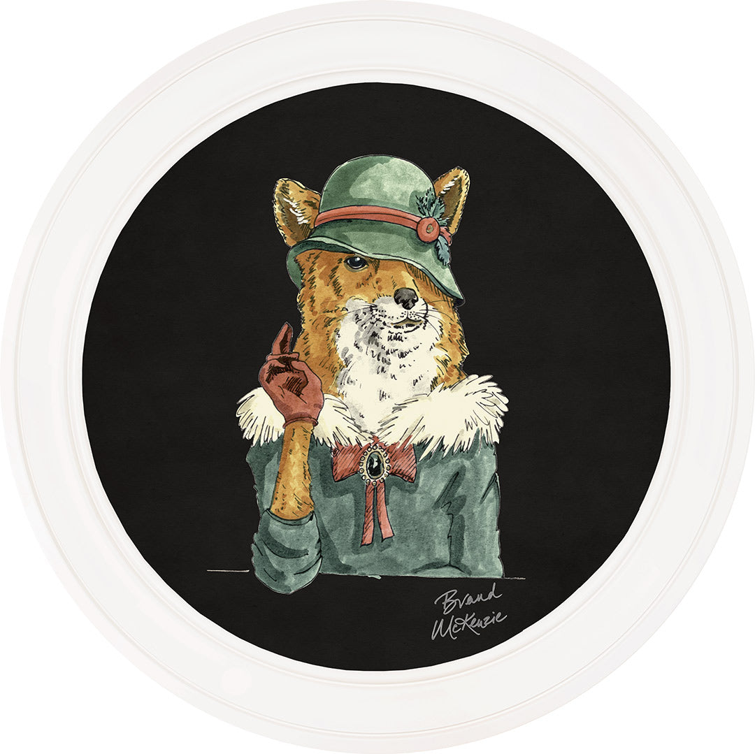 Add a touch of classic sophistication and intriguing charm to your home with the "Happy Hour - Vixen" framed art print by Brand McKenzie. This elegant artwork features Vixen, a character exuding vintage glamour in her fur-trimmed coat, brooch, and stylish cloche hat. Her knowing glance and poised presence create an atmosphere of timeless grace and subtle mystery. Bring Vixen's classic allure to your décor.