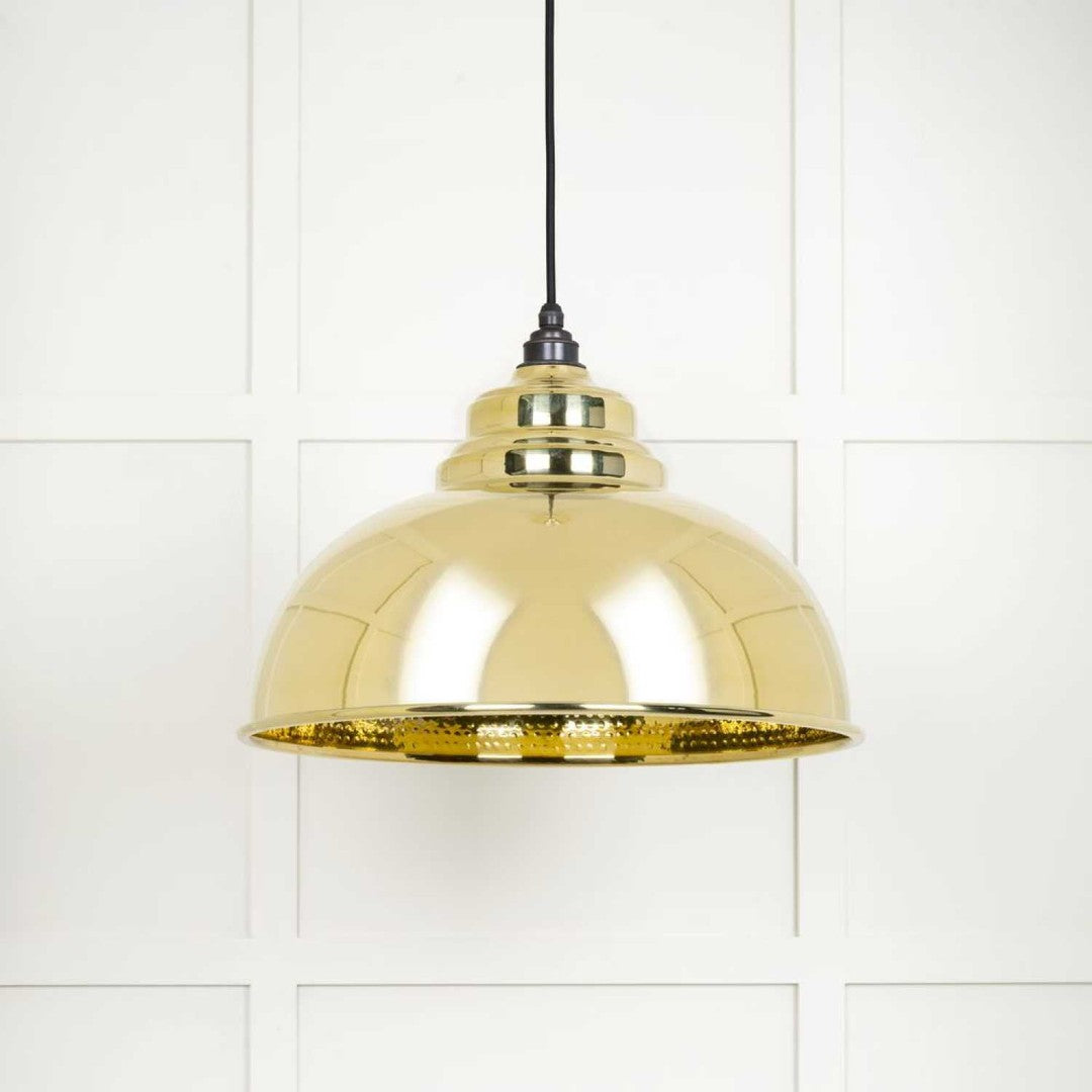 Expertly spun from solid brass and polished for an extra-luxurious look, you can choose from a hammered or smooth internal shade. This brass light is stunningly beautiful when lit, casting a soft dappled light across your room. Whether placed in the entryway or as a centrepiece in your living room, this Brass Pendant Ceiling Light will create an eye-catching focal point that looks as beautiful as it feels inviting. Get ready to bathe your home in elegant illumination that's sure to stand out!