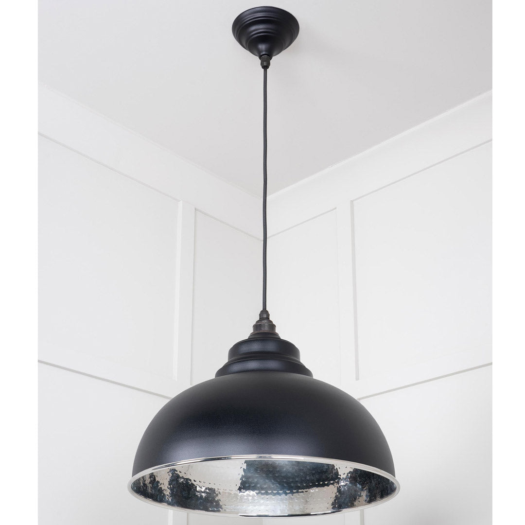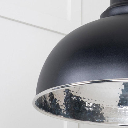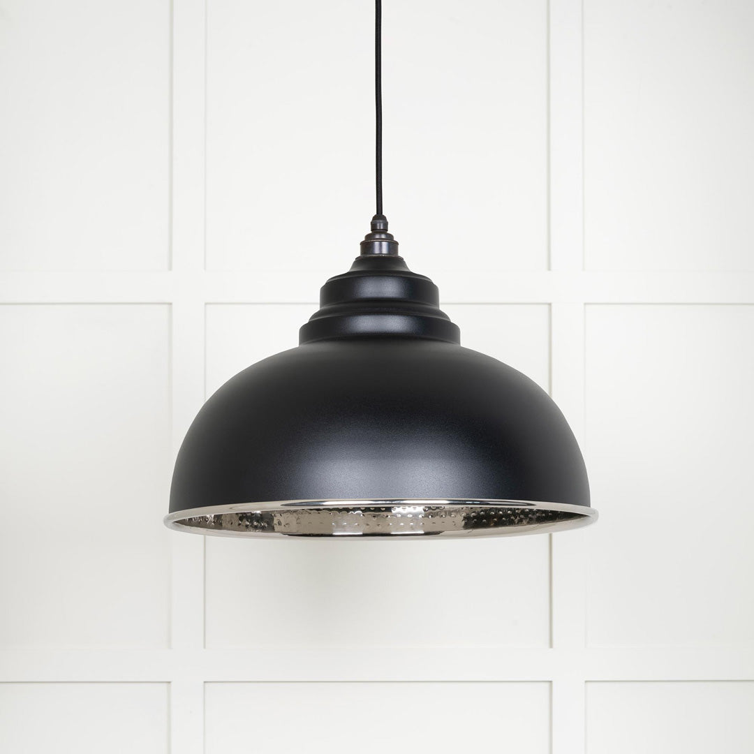 The edges are rounded, giving the light a unique and eye-catching shape to become the focal point of any room. Whether you choose a hammered or smooth interior, the pendant light will bring a subtle, warm glow to the area surrounded by cooler, brighter bulbs. Add an element of sophistication and beauty to your home today with the beautiful Harborne Pendant Ceiling Light in Black and Nickel.