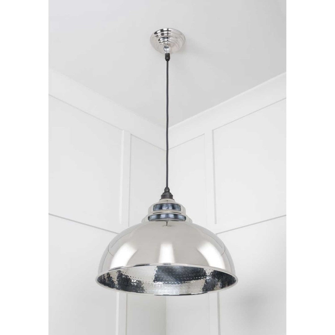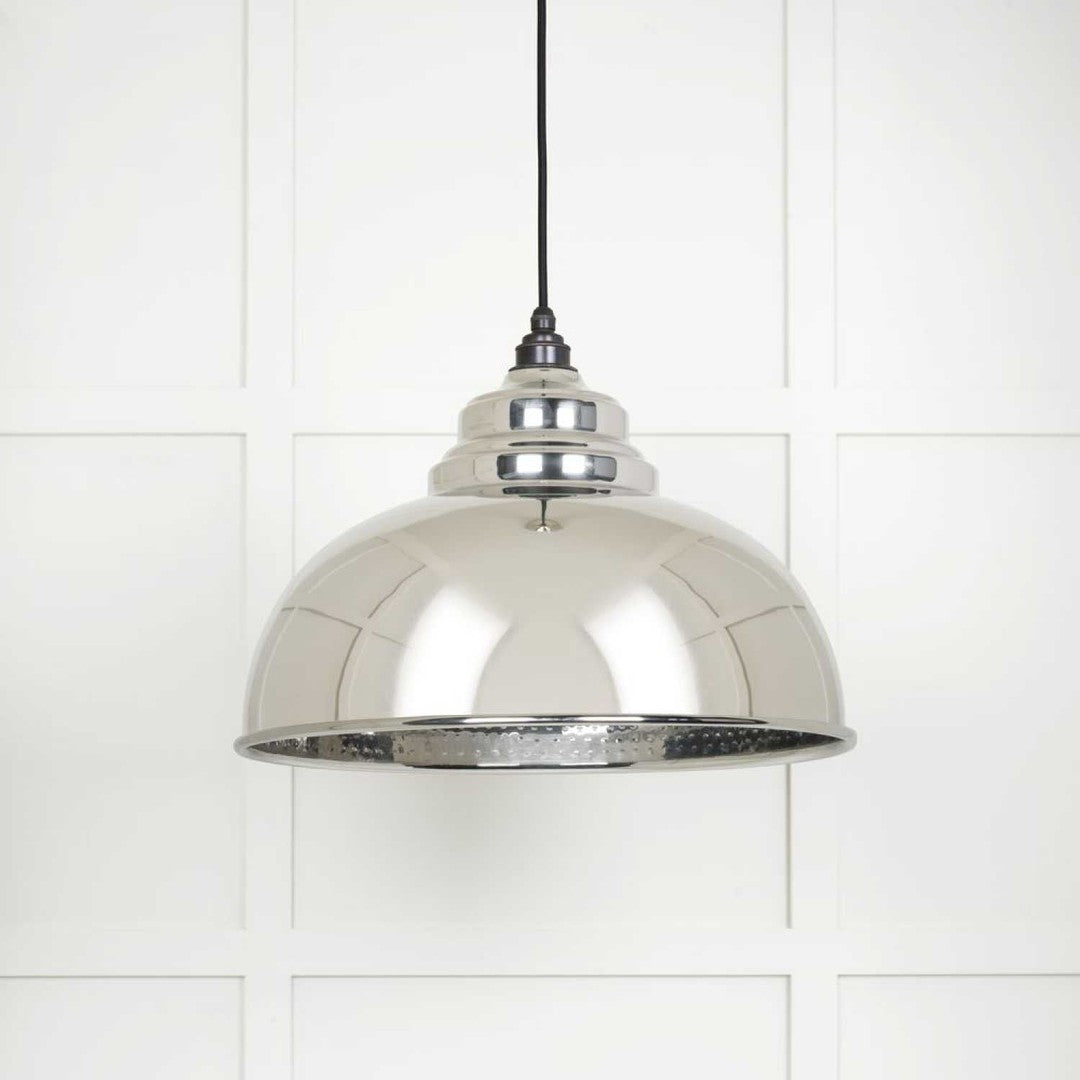 Crafted from solid brass and plated in Nickel, this sleek, contemporary look is sure to turn heads. The Nickel material creates beautiful reflections and unexpected lighting accents, perfect for illuminating any living space. A timeless addition to any modern home, the Nickel Ceiling Light has a choice of smooth or hammered internal shade.
