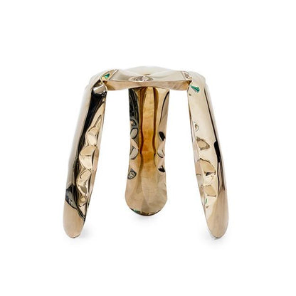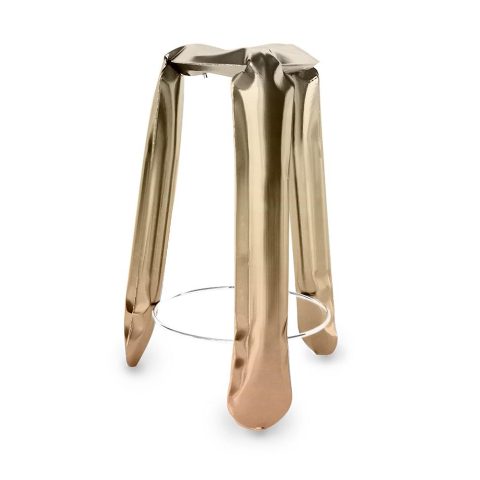 Plopp is a stool made of inflated metal that underwent authorial process of thermal colouring, which gave it a unique, golden tint.