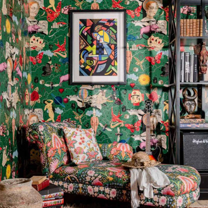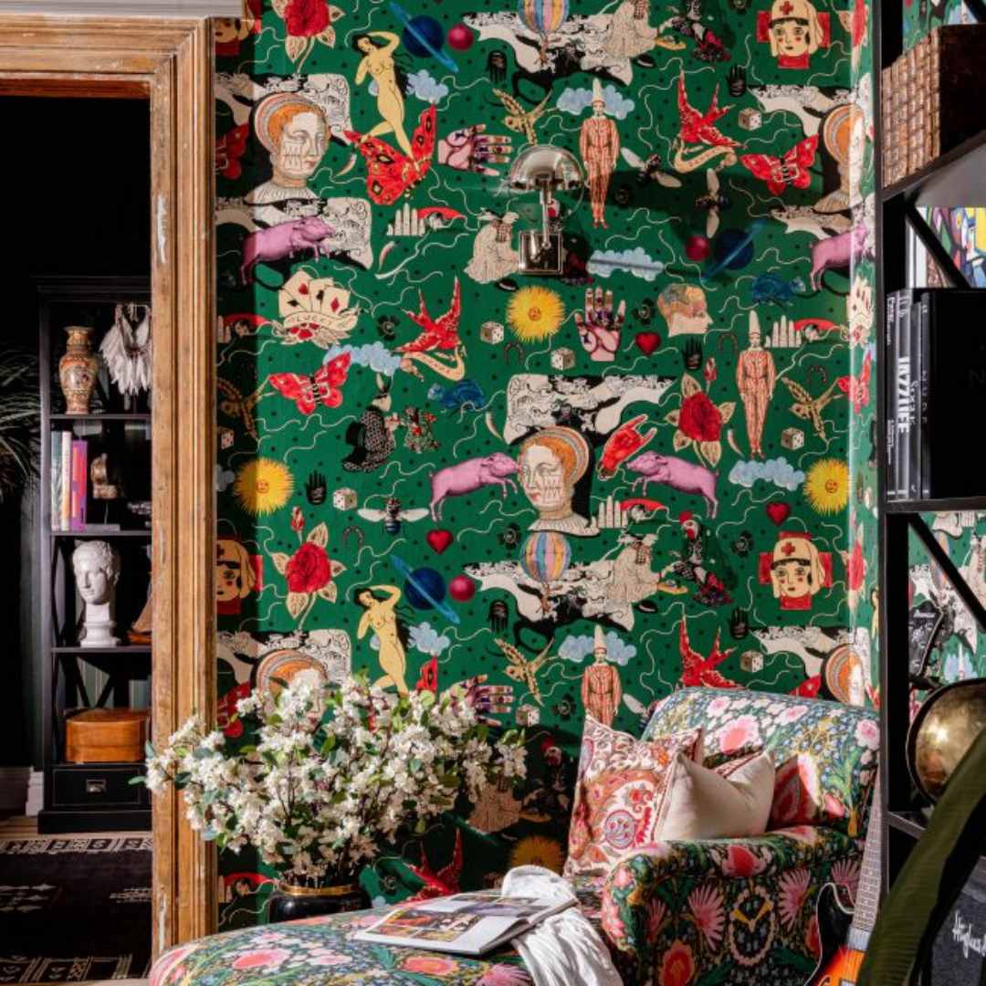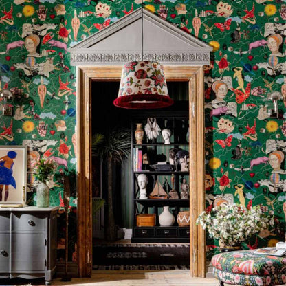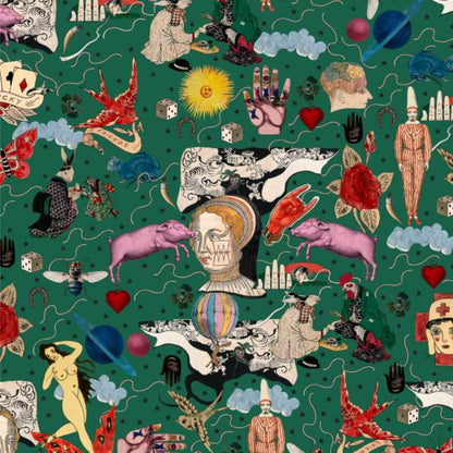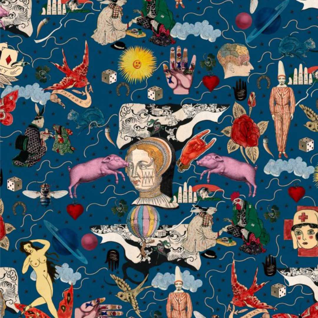 Forming part of the Woodstock '69 Collection, this stunning wallpaper which is set against either a blue or green background will take over your senses and take you to a dreamlike world of magic and optical illusions, where the boundaries of reality become blurred.