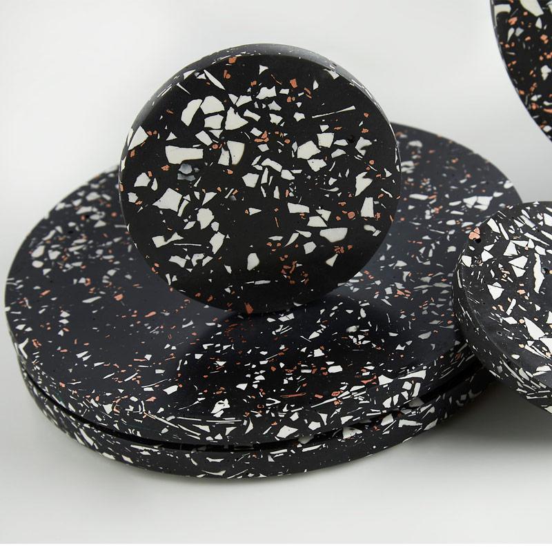Inspired by the darkness of winter, this unique terrazzo placemat will add a dramatic statement to your dining table. They also make great trivets, table centrepieces or plant stands.