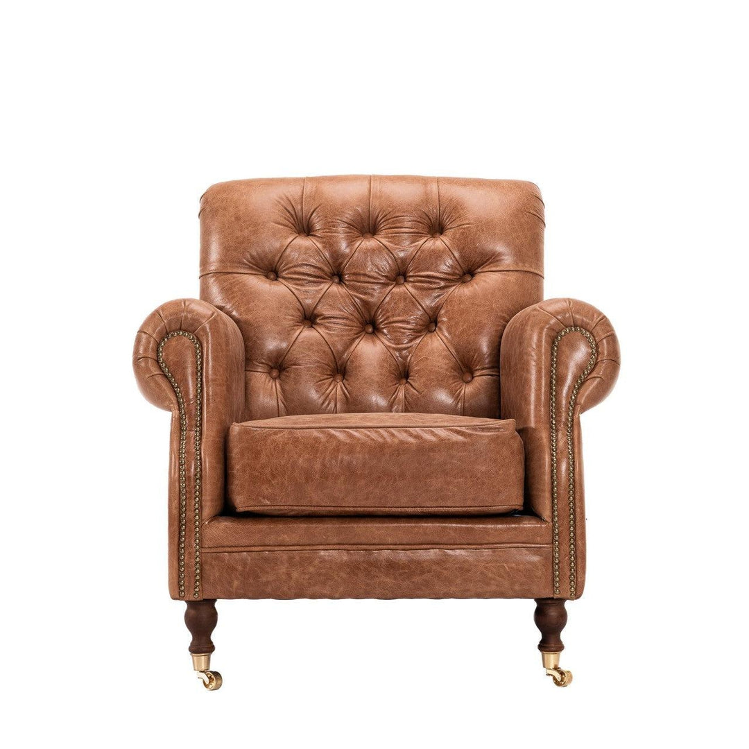 If you're looking for a regal, sophisticated chair that will make a statement in any room, look no further than the Kingston Chair in Cambridge Hazelnut leather. This luxurious chair is upholstered in rich hazelnut leather with a deep tufted back and rolled arms. The perfect addition to any living room or library, the Kingston Chair exudes elegance and sophistication.