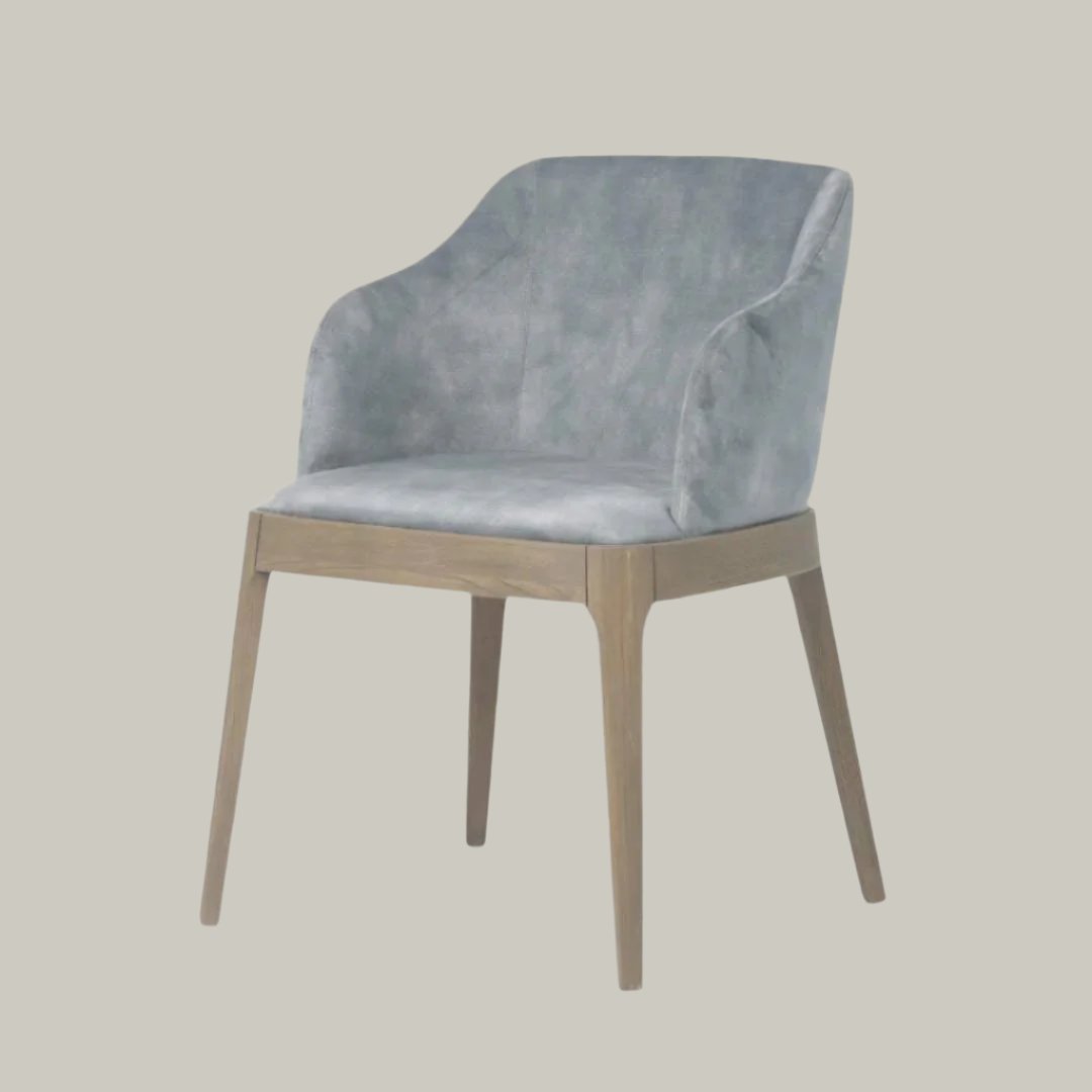 The Kojima Chair is a striking fusion of luxury and contemporary design, making it a standout in any space. Upholstered in plush velvet, it offers both elegance and comfort, creating a refined seating experience. The sleek, modern silhouette is complemented by a light ash wood base, adding warmth and natural charm with its smooth finish. The blend of soft velvet and the sturdy, minimalist wood frame achieves the perfect balance of style and comfort. Available in both cream and storm blue, the Kojima Chair is ideal for dining rooms, bedrooms, or lounge areas, infusing any interior with understated luxury.