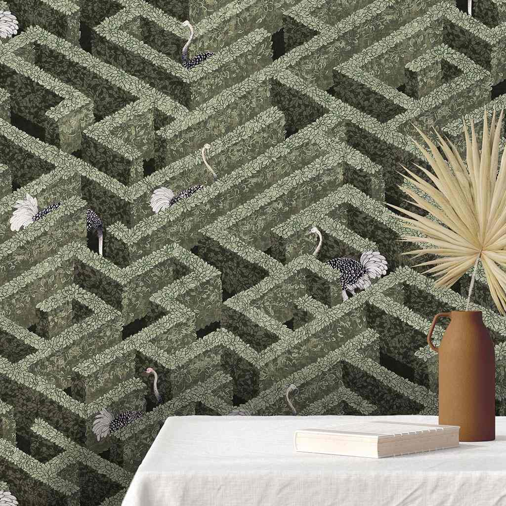 Guaranteed to raise a smile, the quirky Labyrinth with Ostrich Wallpaper makes the perfect statement wallcovering!