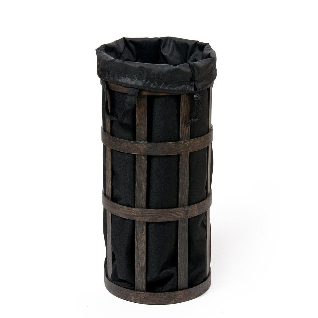 Crafted from sustainably harvested dark stained American white oak and oak veneers, the basket features non-slip silicone rubber feet and a washable, heavy duty linen bag with fortified seams and handles. The bag can be easily lifted out the basket whilst the shear lining won't snag your delicates.