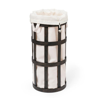 Add a minimalist, contemporary look to your bathroom or utility space whilst adding an element of ease to laundry chores with the dark oak laundry basket cage with either black or white linen bag.