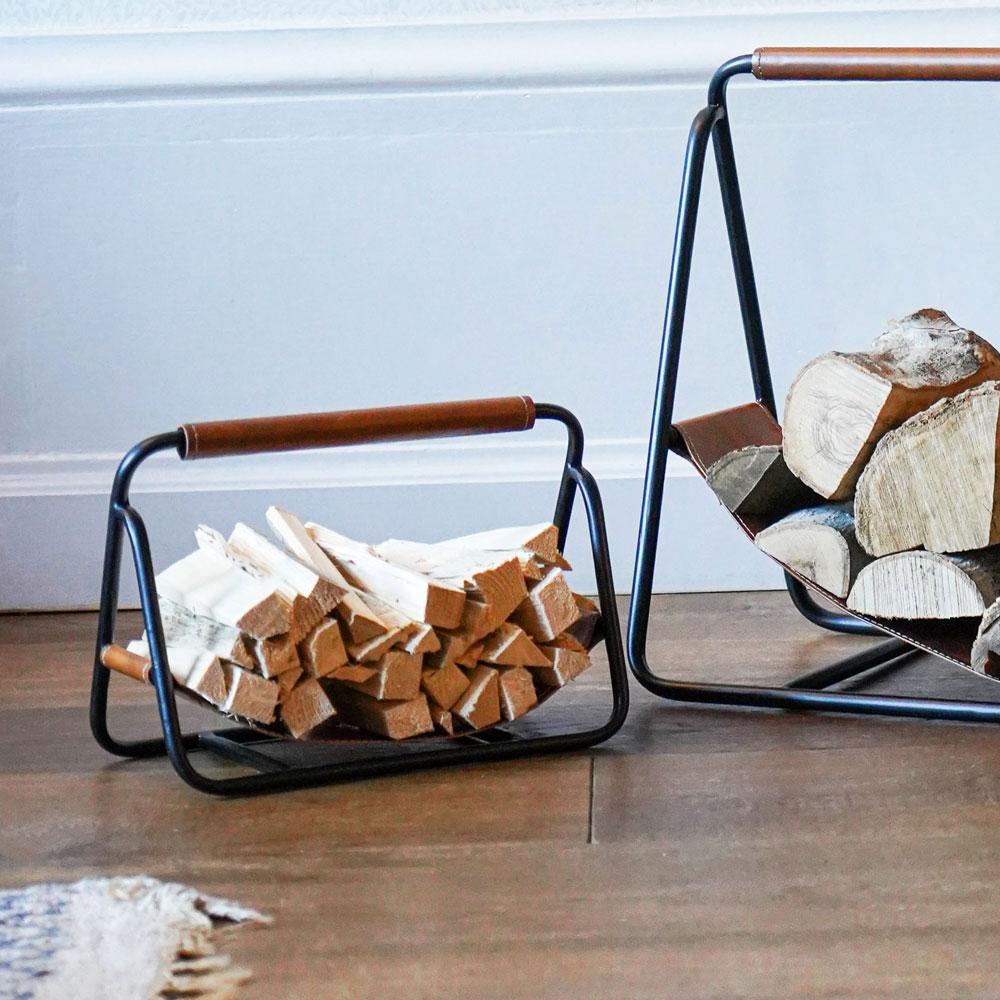 Crafted from iron with a black finish and tan leather, the modern design works perfectly in a Scandi style interior. Complement it with the matching log holder.