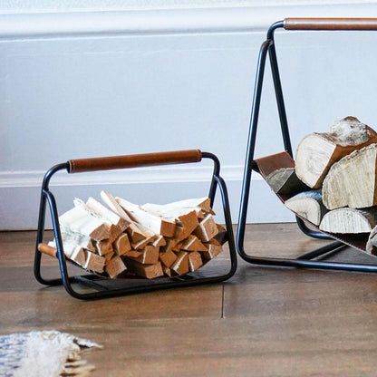 Keep your fireside kindling neat and tidy with our stylish leather sling kindling holder with a modern black frame. This modern design has soft leather handles and a sling base which will stylishly house your kindling.