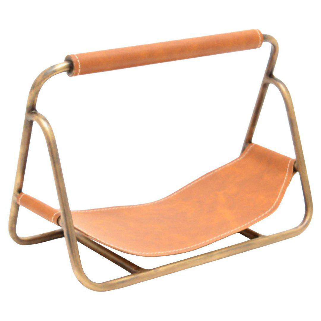 Crafted from antique brass metal and tan leather, the modern design works perfectly in a Scandi style interior. Complement it with the matching log holder.