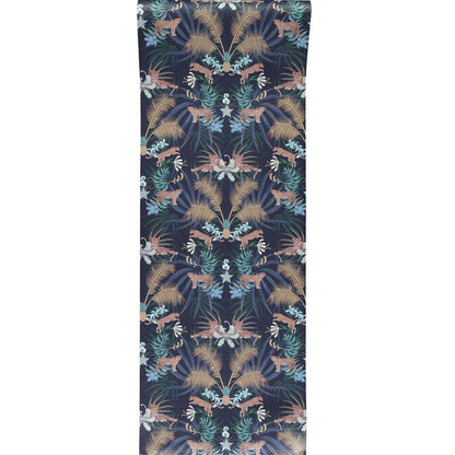Perfect for feature walls, our stunning Leopard Luxe Wallpaper is designed by Becca Who for Graduate Collection. Set on a dramatic blue background, this simple yet striking wallpaper design features leaping leopards prowling amongst golden palms and pineapples, resulting in a majestic design of striking elegance, which creates a beautiful focal point in an interior.