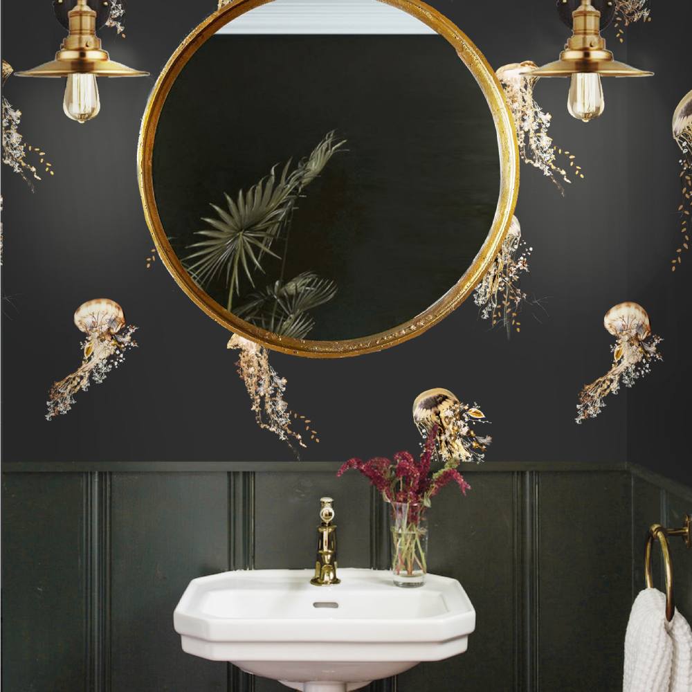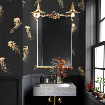 Bring some dramatic underwater vibes to your home with the wow factor Charcoal jellyfish Living Waters Wallpaper by Good & Craft.