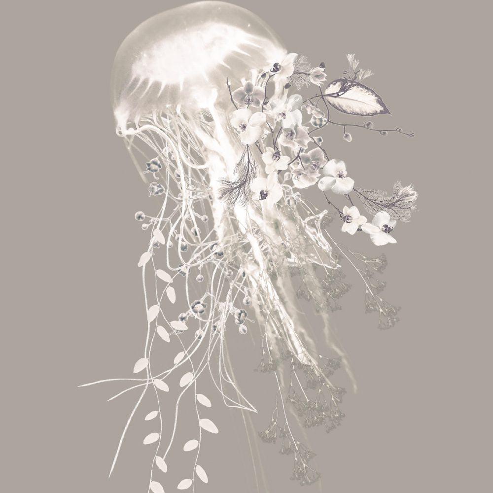 Dive into the fascinating landscape of the underwater world with this stunning Jellyfish Living Waters Wallpaper by Good & Craft.