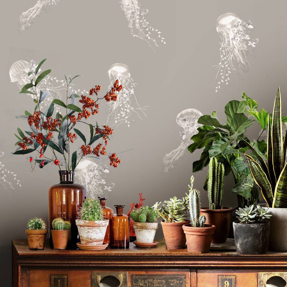 Forming part of the Sea in Bloom range, a nautical wallpaper collection inspired by the deep oceans and their colourful inhabitants. Dreamy jellyfish patterns, and tranquil lagoon wallpapers that depict the beauty and fragility of marine life.