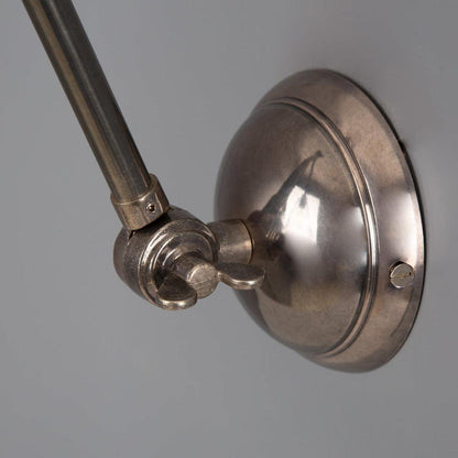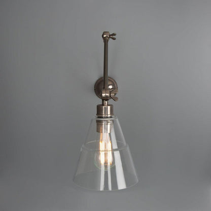 The industrial style antique silver Lyx adjustable arm wall light by Mullan Lighting is a stylish light with a metal holder and sleek clear glass cone that will enhance your home with a perfect mix of form and function.