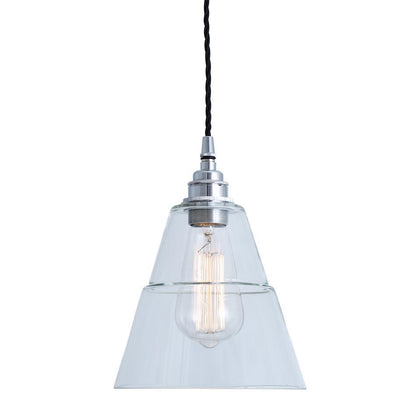 Suspended from a simple braided cord, our sleek and contemporary Lyx Clear Glass Pendant Light by Mullan Lighting adds an understated air of glamour and elegance to any home. This contemporary pendant light boasts a charming clear cone glass shade around a single Edison light bulb that gives out a seductive glow to your interior.