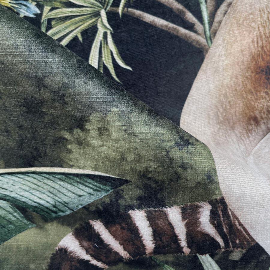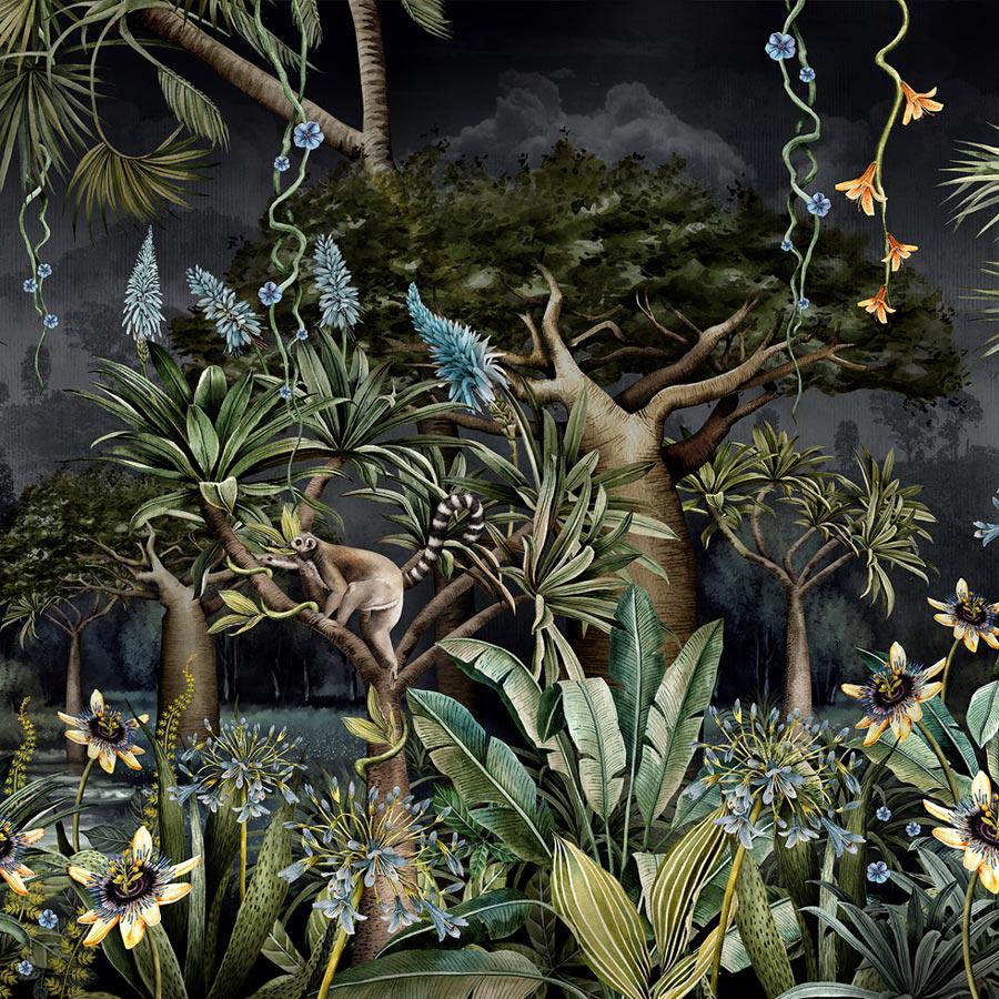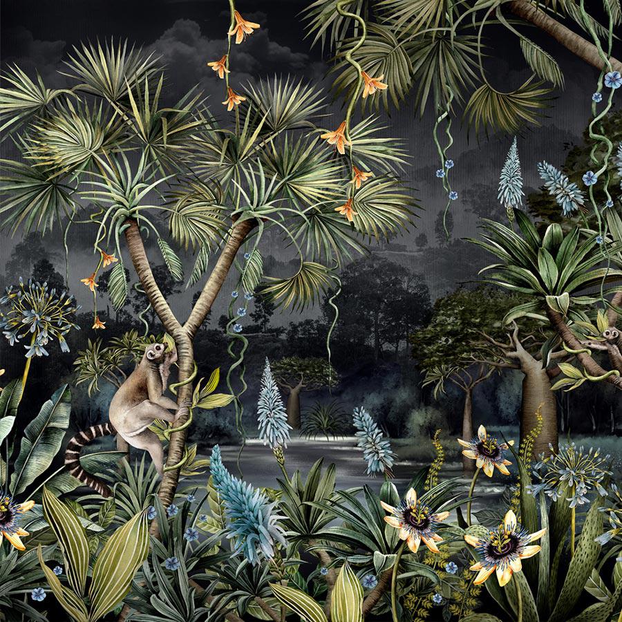 Imagine the moonlit beauty of the majestic scene, where ring tailed lemurs climb vines, and exotic flowers grow at the edge of the rainforest. The exquisite brushwork of the hand painted scene will amaze you, and you can choose between two luxurious fabric options recycled velvet or natural linen. Bursting with charm and energy, Madagascar Midnight is the perfect addition to your home that will bring you joy and wonder every day.