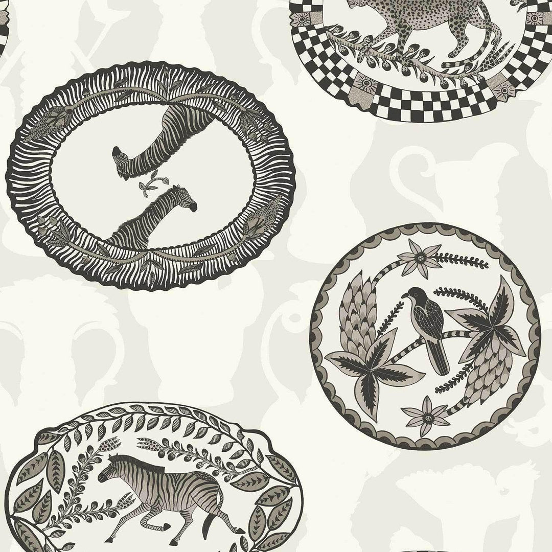 This is one of Cole & Son's more classical designs. The Matrinah Wallpaper forms part of the charming and stylish new Ardmore collection and features an arrangement of ornamental platters and dishes, all intricately patterned with birds and animals and edged with decorative borders and pie crust scallops.