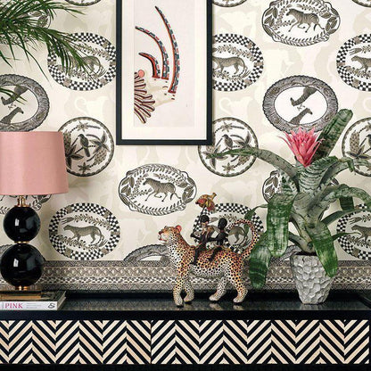 Ardmore is a charming and stylish new range of wallpapers and borders in collaboration with Ardmore Ceramic Art celebrating African traditions and culture. Drawing inspiration from Ardmore’s colourful and quirky ceramics the collection explores Africa’s exotic flora and majestic fauna: from rare birds to big cats, elephants, rhinos and mischievous monkeys; as well as the beautiful patterns of Zulu beadwork and woven basket ware.