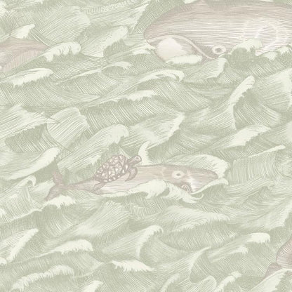 The stylish Melville Wallpaper forms part of Cole & Son’s Whimsical Collection. Melville features finely engraved turtle bearing whales gliding to and fro on an ocean of gentle waves.