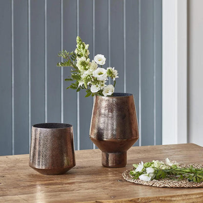 Discover the epitome of elegance and sophistication with this Metallic Bronze Glass Vase in a choice of tow sizes. This modern bronze vase is bound to mesmerize and elevate any space with its premium glaze and lustrous metallic hue.