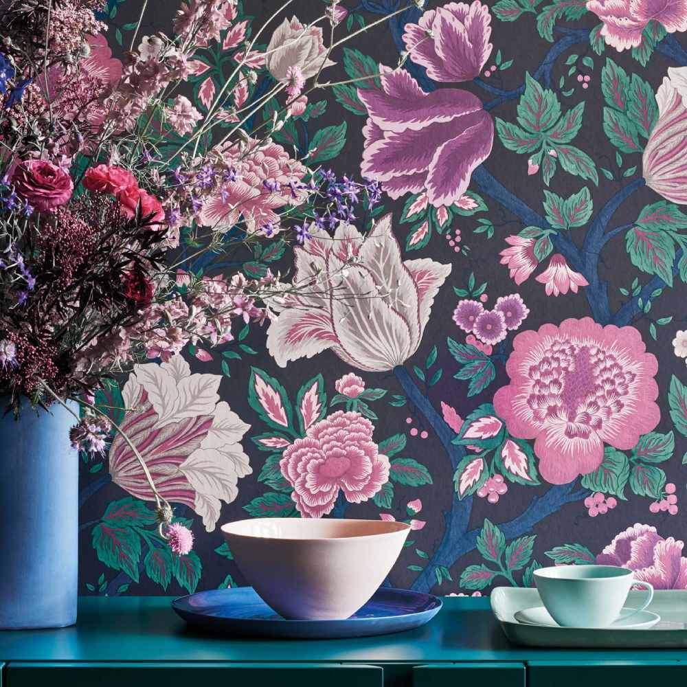 Midsummer Bloom from Cole & Sons Pearwood Collection depicts abundant summer flowers in all their glory.